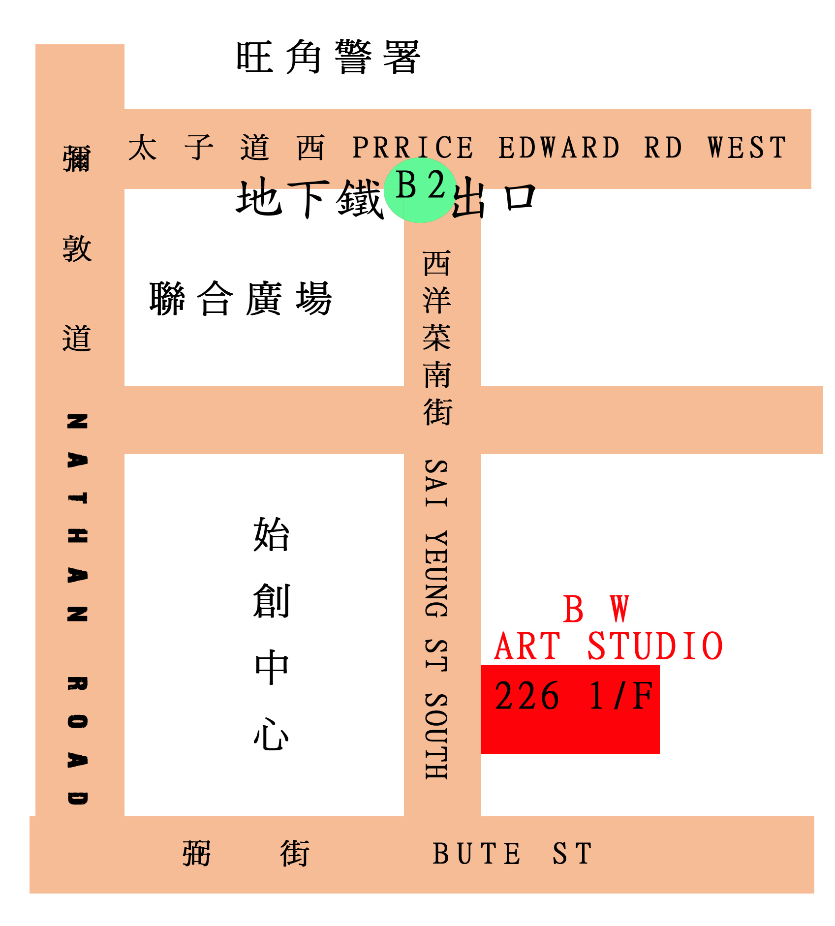 九龍西洋菜南街226號1/F(太子地下鐵B2出口,始創中心後面)